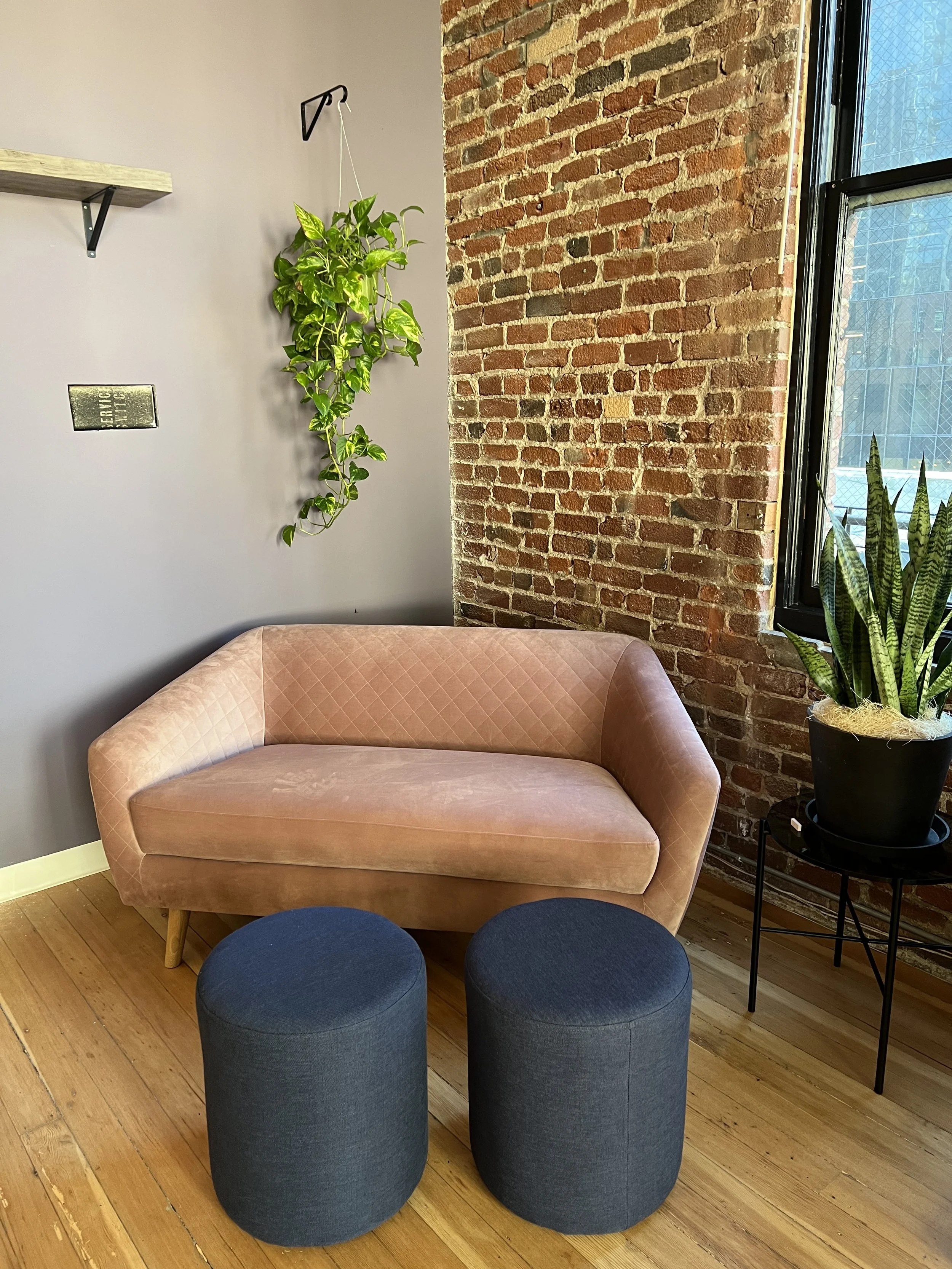 A casual couch corner with natural light.